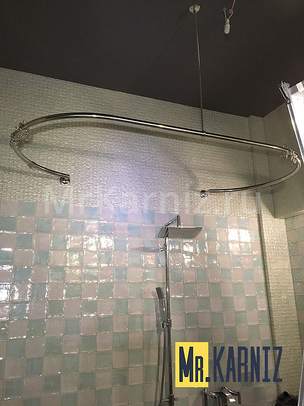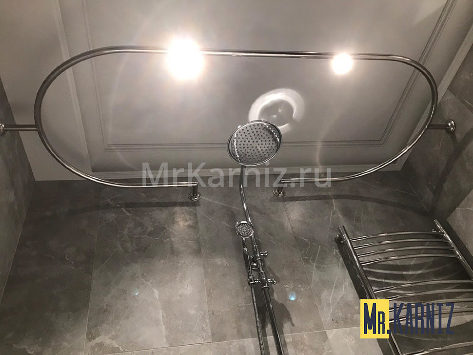 Дабы цельный карниз как можно более точно соответствовал внешнему контуру душевой, повторял все изгибы ванной, стоит приобрести модель для полукруглой либо ассиметричной емкости. На такие хромированные изделия Россия, в отличии от поставщиков зарубежных аналоговых товаров, дает гарантию три года.