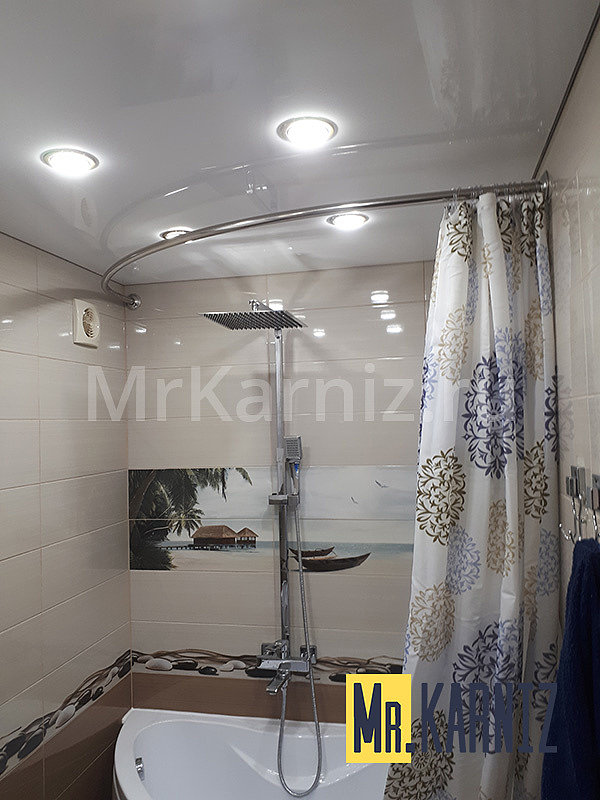 Основой штанги является цельная стальная труба. На этапе производства ей задают требуемую форму, ориентируясь на размеры бортика ванны. Крепят карниз на кронштейны, закрепленные в стенах саморезами/шурупами, или на поворачиваемые крепления к потолку. Второй способ используется реже.